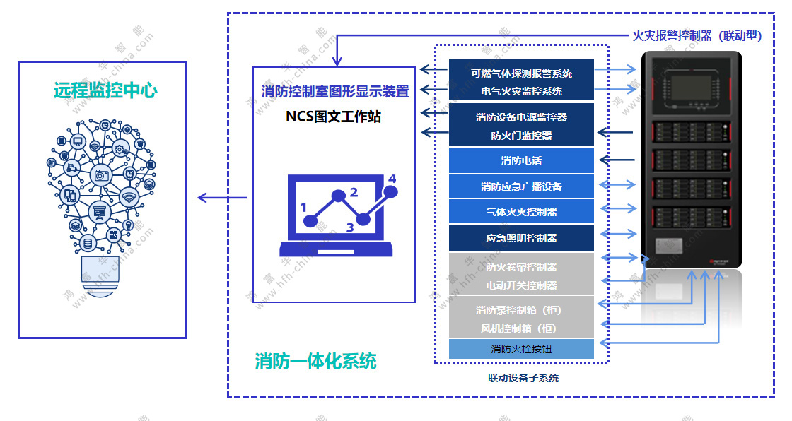 - 建立控制中心,通過(guò)多維度的展示,從整體到局部直觀展示園區(qū)的消防安全狀況,集中管理消防報(bào)警